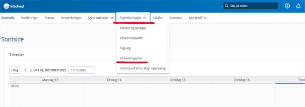 Velg «Faginformasjon» og «Utdanningsplan»
