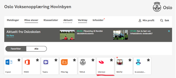 Velg appen som heter «InSchool» og logg inn
