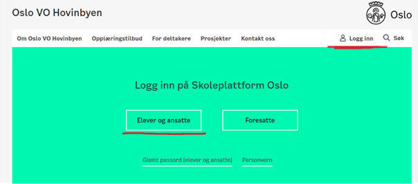 Logg inn med brukernavn og passord fra skolens hjemmeside